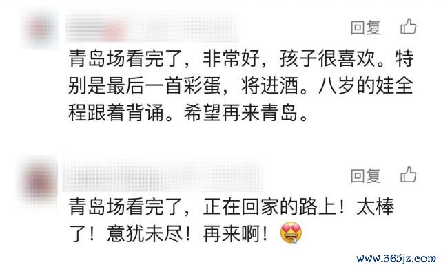 青岛巡演时,有个姆妈发来音书:" 8 岁女儿全程随着唱《将进酒》,扫尾后抱着我证来岁还要来。"